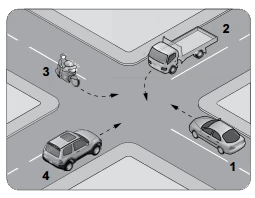 Şekildeki kontrolsüz kavşakta ilk geçiş hakkını hangi numaralı araç kullanmalıdır?