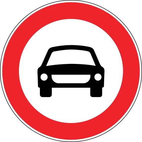 Kırmızı çember işaretleri yasak bildirir. Çemberin içinde otomobil olduğu için araç yasağını belirtir. Ancak motosiklet girebilir.